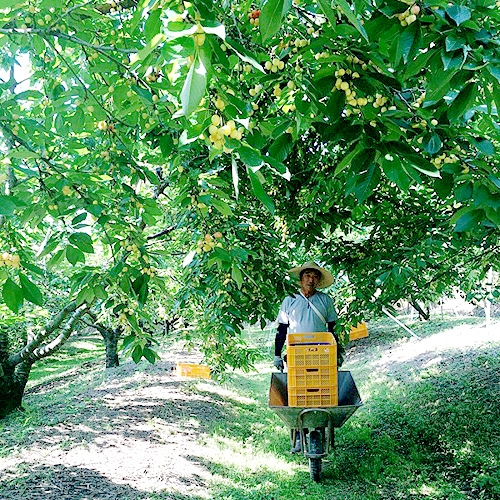 아이들과 함께 체리따기 체험을 할 수 있는 농장으로 체리 2kg을 딸 수 있는 바구니를 제공한다.