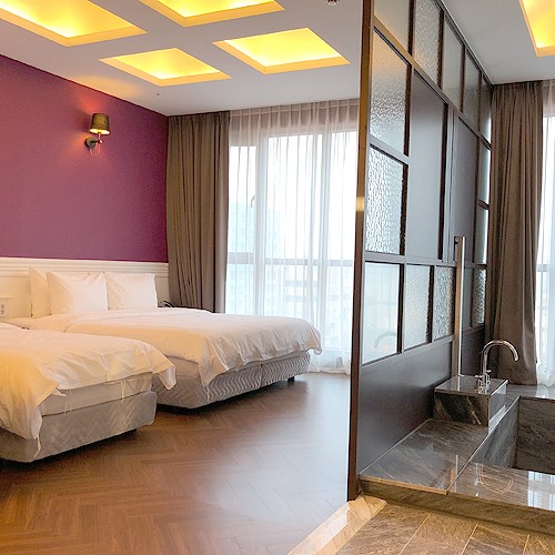호텔입구-주차장(54대 가능)-프론트데스크-객실로 이어지는 편리하고 쾌적한 동선 설계로 투숙하시는 고객님들의 편의성을 제공하고 편안히 쉬실 수 있도록 노력하고 있습니다.