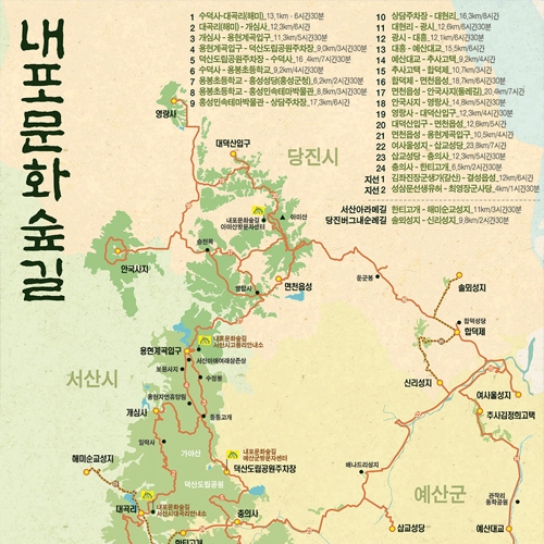 충남 내포 가야산 주변의 4개시군(서산시,당진시,홍성군,예산군)이 내포지역에 남아 있는 많은 불교유적과 천주교 성지, 동학, 역사인물 및 백제 부흥운동의 흔적들이 남아 있는 지점들을 옛길과 마을길, 숲길과 임도, 들길, 하천길을 따라 연결한 충청남도 최대의 장거리 도보 트레일로서 약 320km의 길이다.