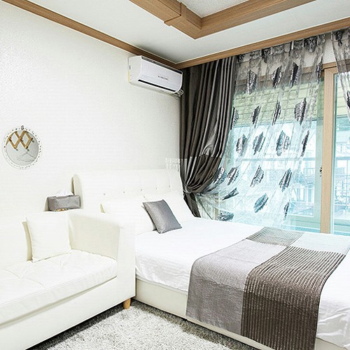 구비시설 : TV,침대,에어컨,쇼파,옷걸이,냉장고,전기포트,테이블,전자레인지,취사도구,욕실용품,객실샤워실