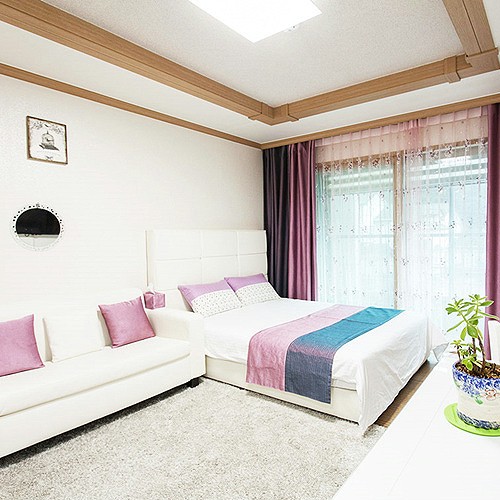 구비시설 : TV,침대,에어컨,쇼파,옷걸이,냉장고,전기포트,테이블,전자레인지,취사도구,욕실용품,객실샤워실