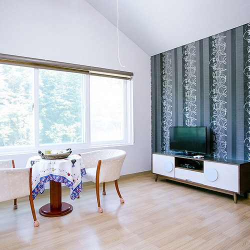 구비시설 : 침대, 벽걸이TV, 에어컨, 냉장고, 전기밥솥, 취사도구일체, 전기쿡탑, 침구류, 세면도구, 화장실, 개별테라스