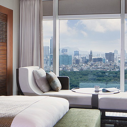 봉은사의 전경을 바라보며 즐기는 월풀 스파와 객실을 장식하는 유명 화가들의 작품들, 럭셔리하고 모던한 인테리어의 조화로 세상의 가장 높은 품격과 가치를 담은 단 하나의 객실입니다..
