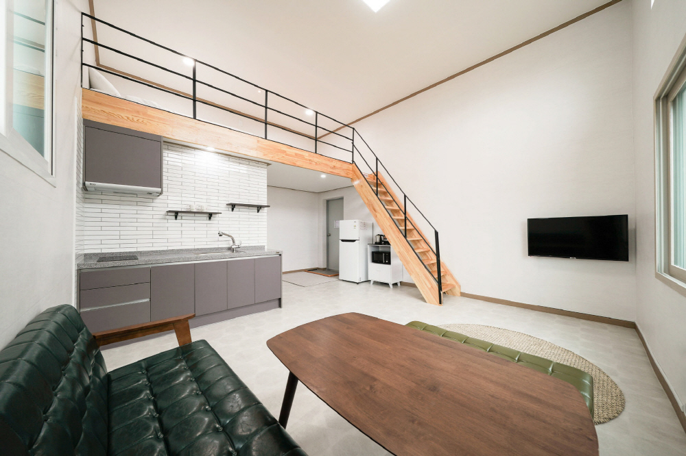 개별바비큐, 침대, 에어컨, TV, 취사시설, 냉장고, 전자레인지, 커피포트, 화장대, 취사도구, 드라이기, 세면도구, 쇼파, 테이블, 전기압력밥솥, 샴푸, 린스, 바디워시, 치약, 비누, 샤워타월